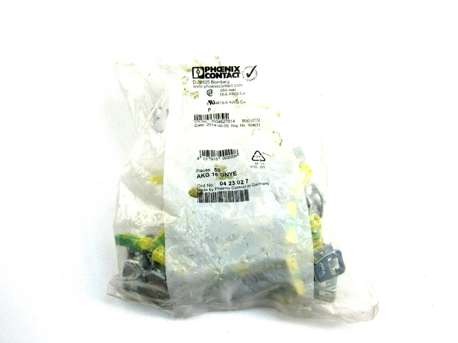 Phoenix Contact AKG 16 GNYE 0423027 Lot of 30 New