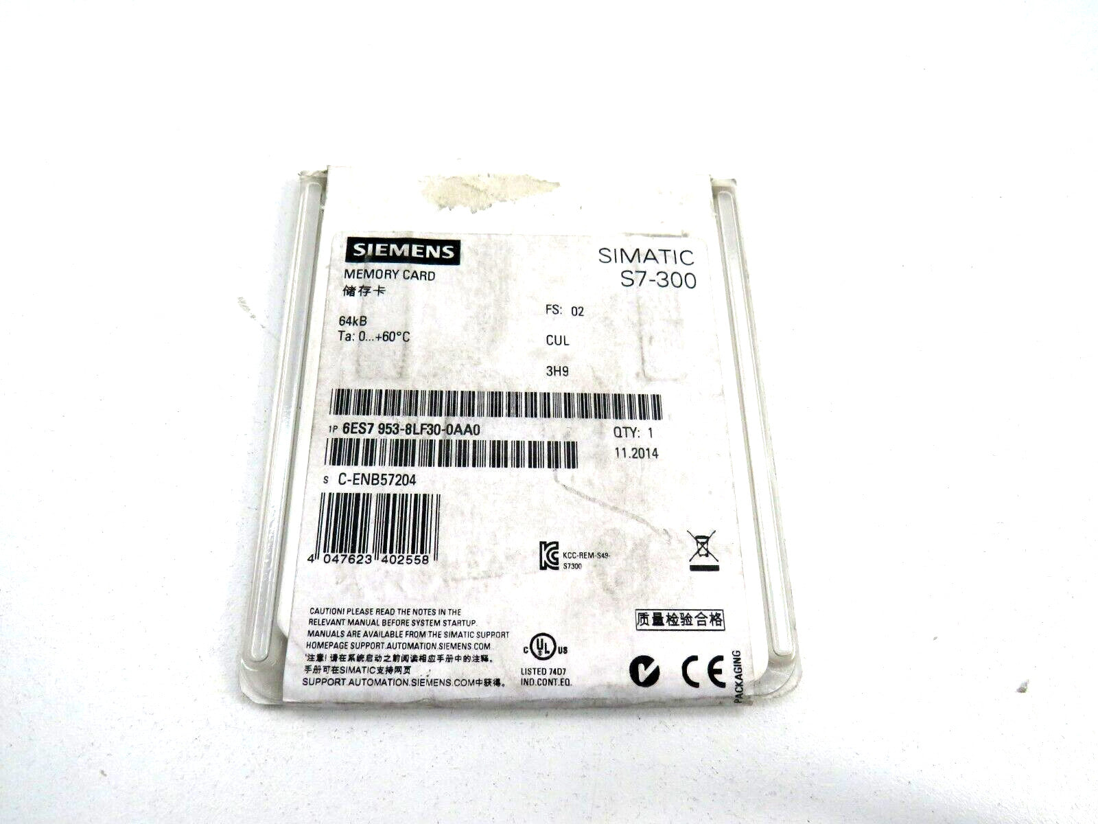 SIEMENS 6ES7 953-8LF30-0AA0 S7-300 Simatic 64kB Memory Card New
